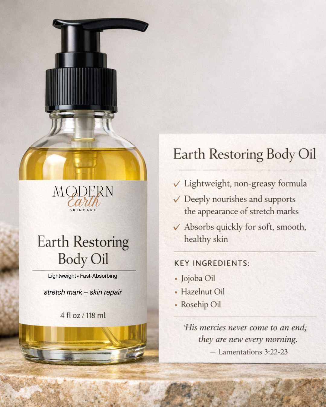 A deeply nourishing body oil created to support the appearance of stretch marks and restore dry, textured skin. This lightweight, vitamin rich blend helps to soften, smooth and visibly improve skin over time, while giving you a healthy natural glow.
